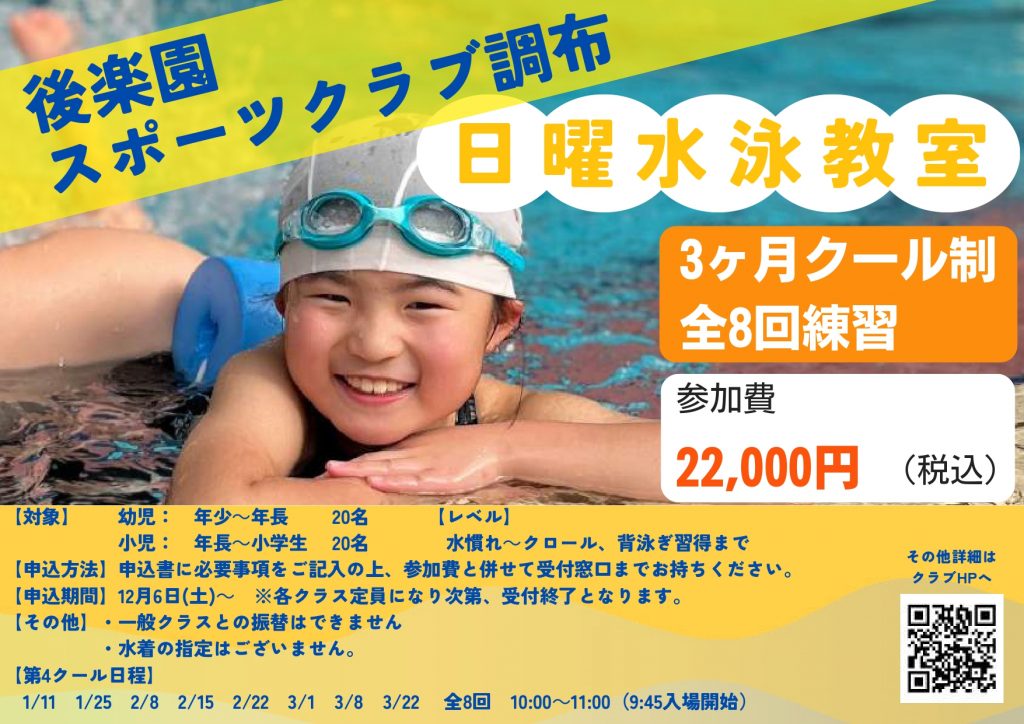 1月期クール制日曜水泳教室のご案内