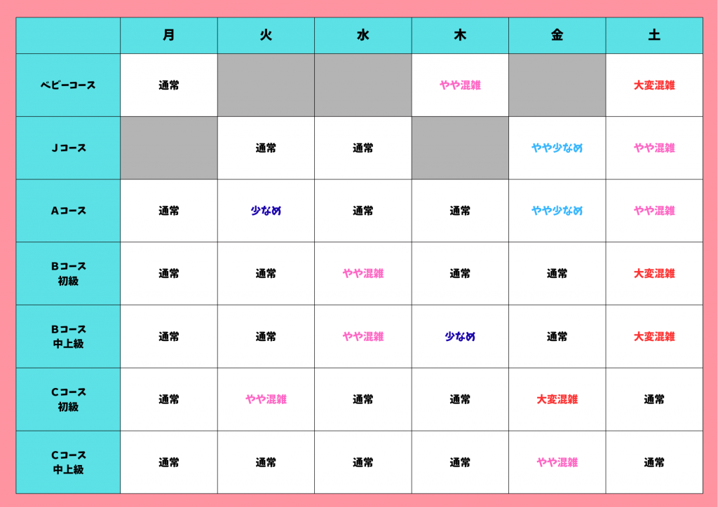 土曜日はどのコースもほぼ混み合っていますが、